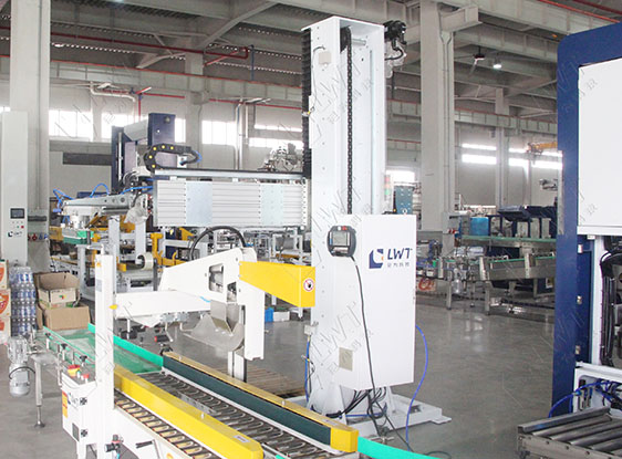 單立柱碼垛機:單立柱碼垛機將封好的紙箱按照一定的排列方式和層數(shù)進行碼垛。這一步驟自動化程度高,能夠大幅提高倉儲效率,減少人工搬運成本,并為后續(xù)的物流運輸提供便利。