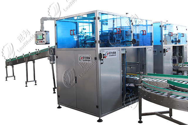 鏈輪式裝箱機(jī)主要工作方式是通過抓頭抓取設(shè)定好數(shù)量的產(chǎn)品放入箱內(nèi),抓頭有磁力吸取式,適合抓取帶磁力的產(chǎn)品,具有不傷罐的優(yōu)點(diǎn);有真空吸盤式,這種適用范圍廣,玻璃瓶、馬口鐵罐、塑料瓶等皆適用;有氣囊式,這種適合礦泉水瓶類的小直徑產(chǎn)品,氣囊抓頭吸力較強(qiáng),更適合怕有跌落風(fēng)險(xiǎn)的玻璃瓶;還有海綿吸盤式,這種適合產(chǎn)品表面相對平整、重量較輕的袋裝產(chǎn)品裝箱。